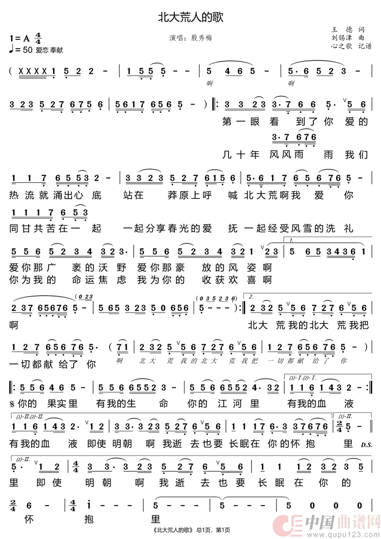 作词:王德   作曲:刘锡津   演唱(奏):殷秀梅   来源:谱友心之歌上传   上传:心之歌   日期:2026-04-17   浏览次数: