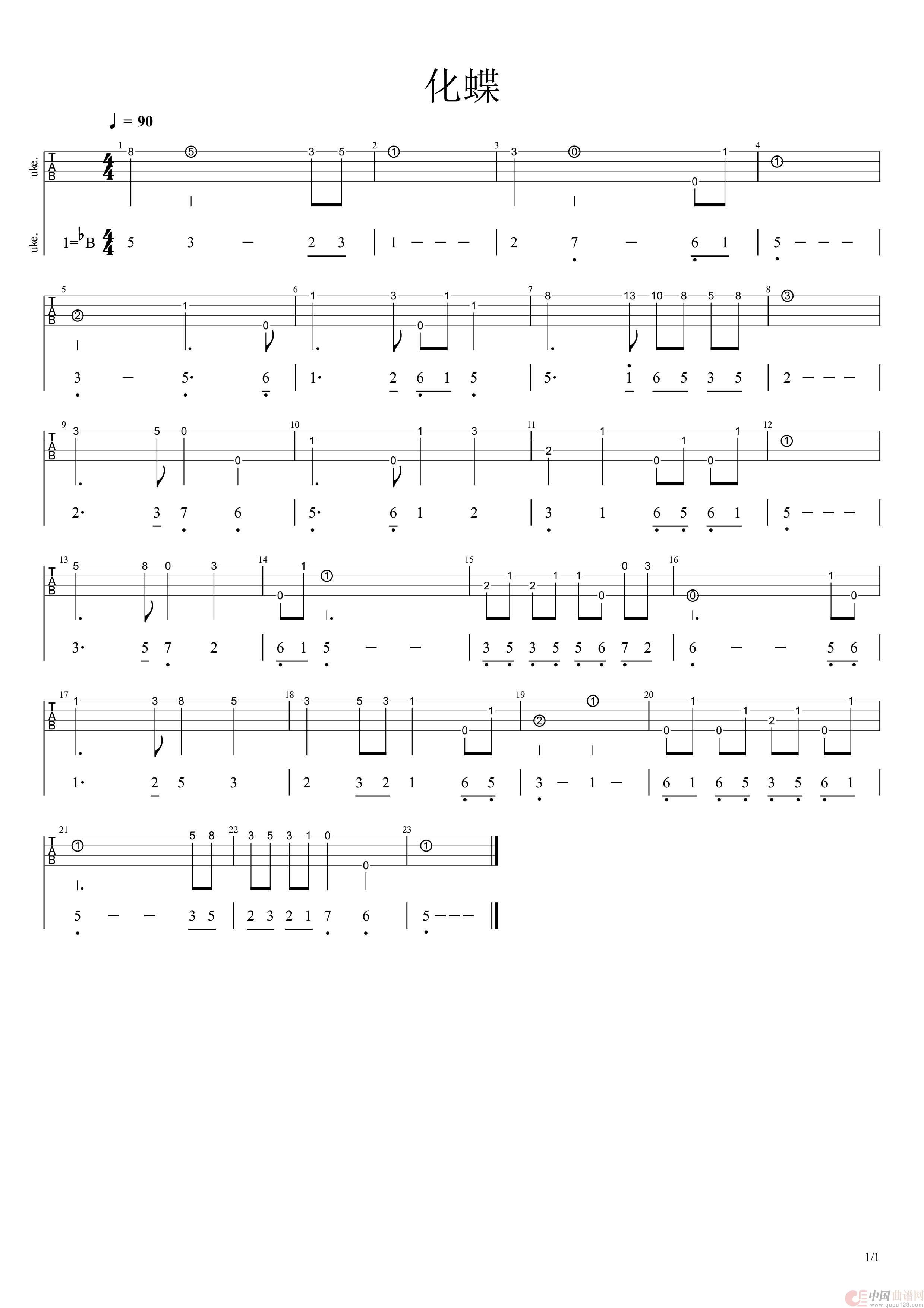 化蝶(ukulele四线谱)