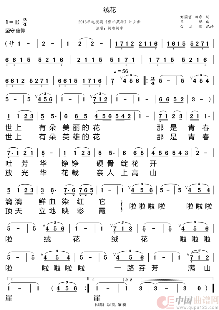 提示:在曲谱图片上单击右键,选择"图片另存为..."即可将曲谱保存到您的电脑中,打印时候可将图片插入到WORD中,调整合适大小打印即可。