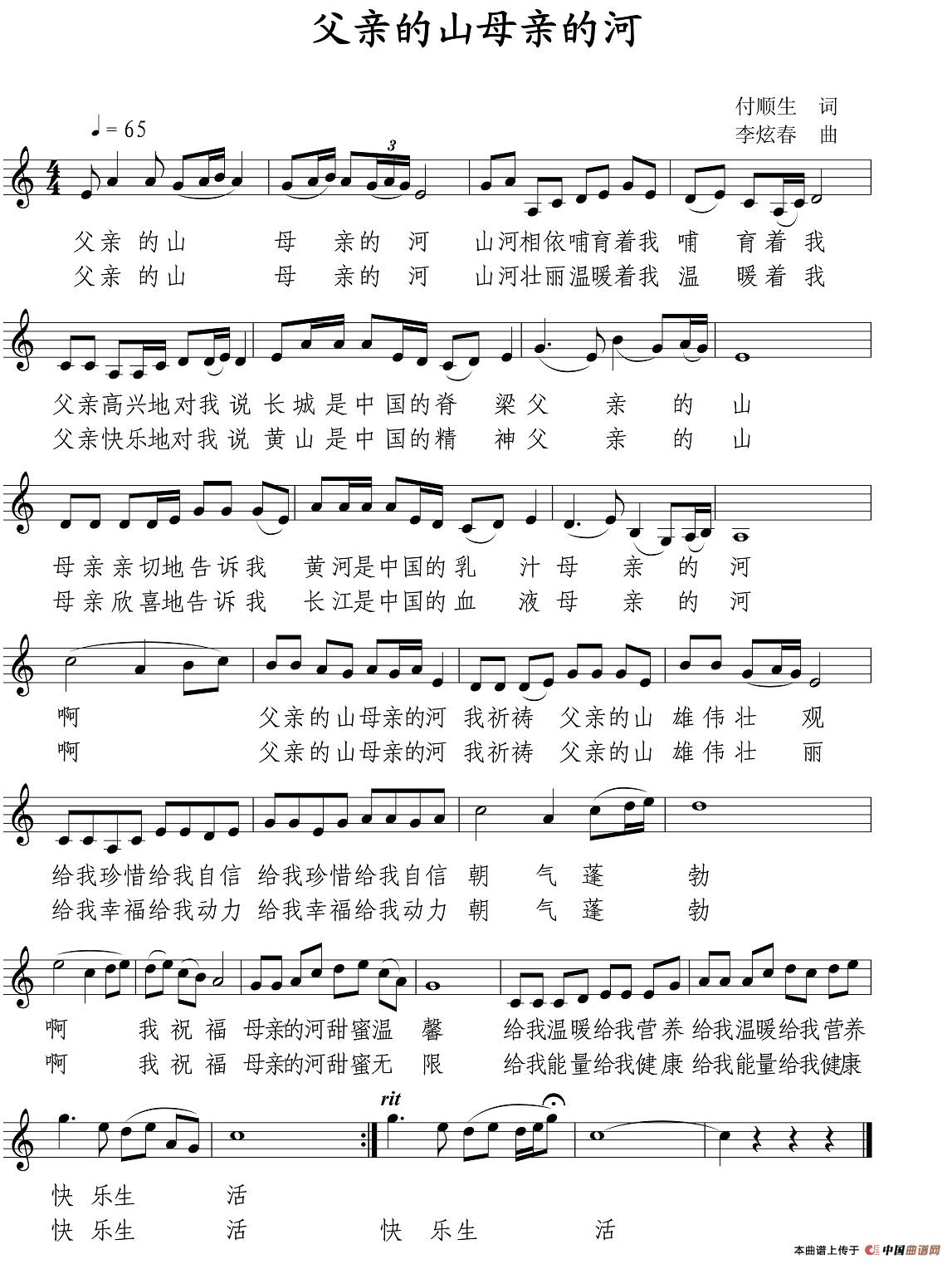 关于《父亲的山母亲的河》曲谱的评论