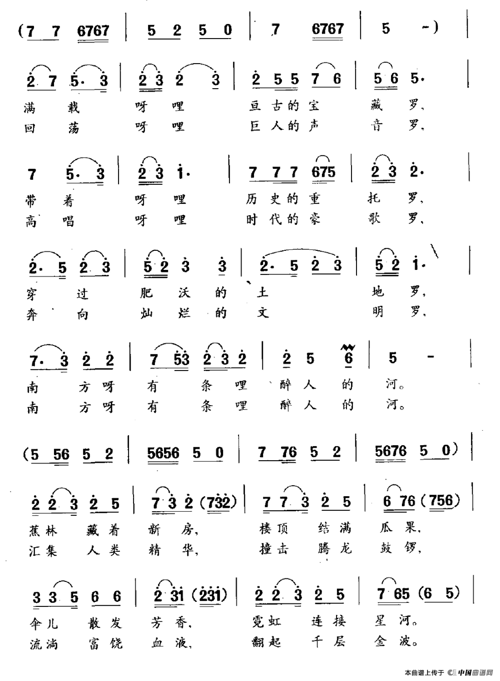 关于《南方有条醉人的河》曲谱的评论