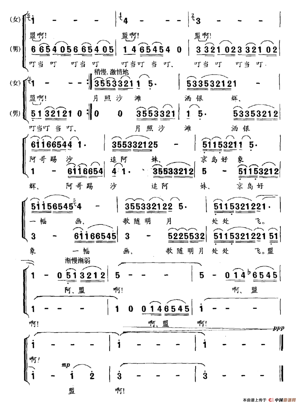 关于《月夜“踢沙”恋歌》曲谱的评论