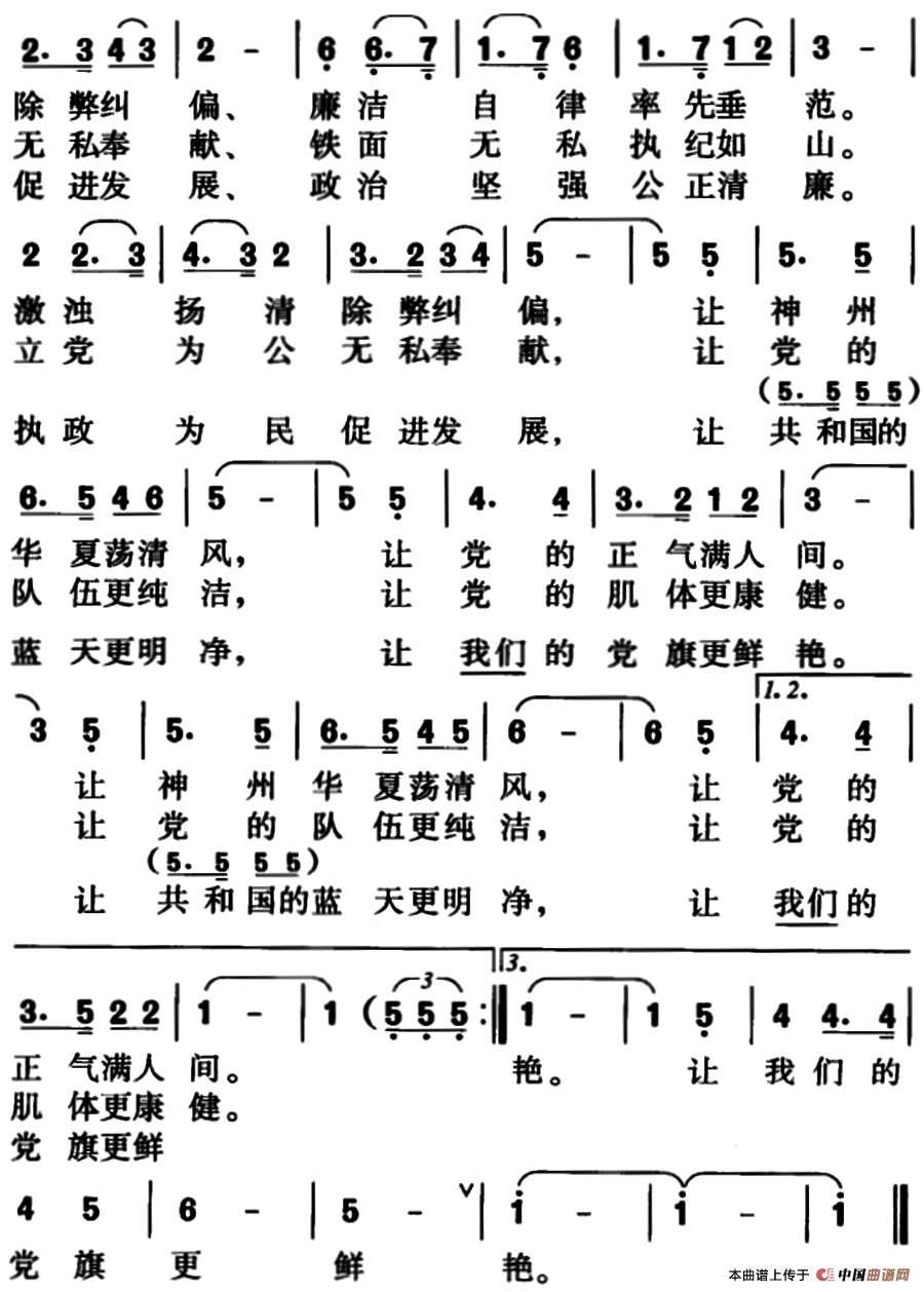 关于《纪检监察干部之歌》曲谱的评论