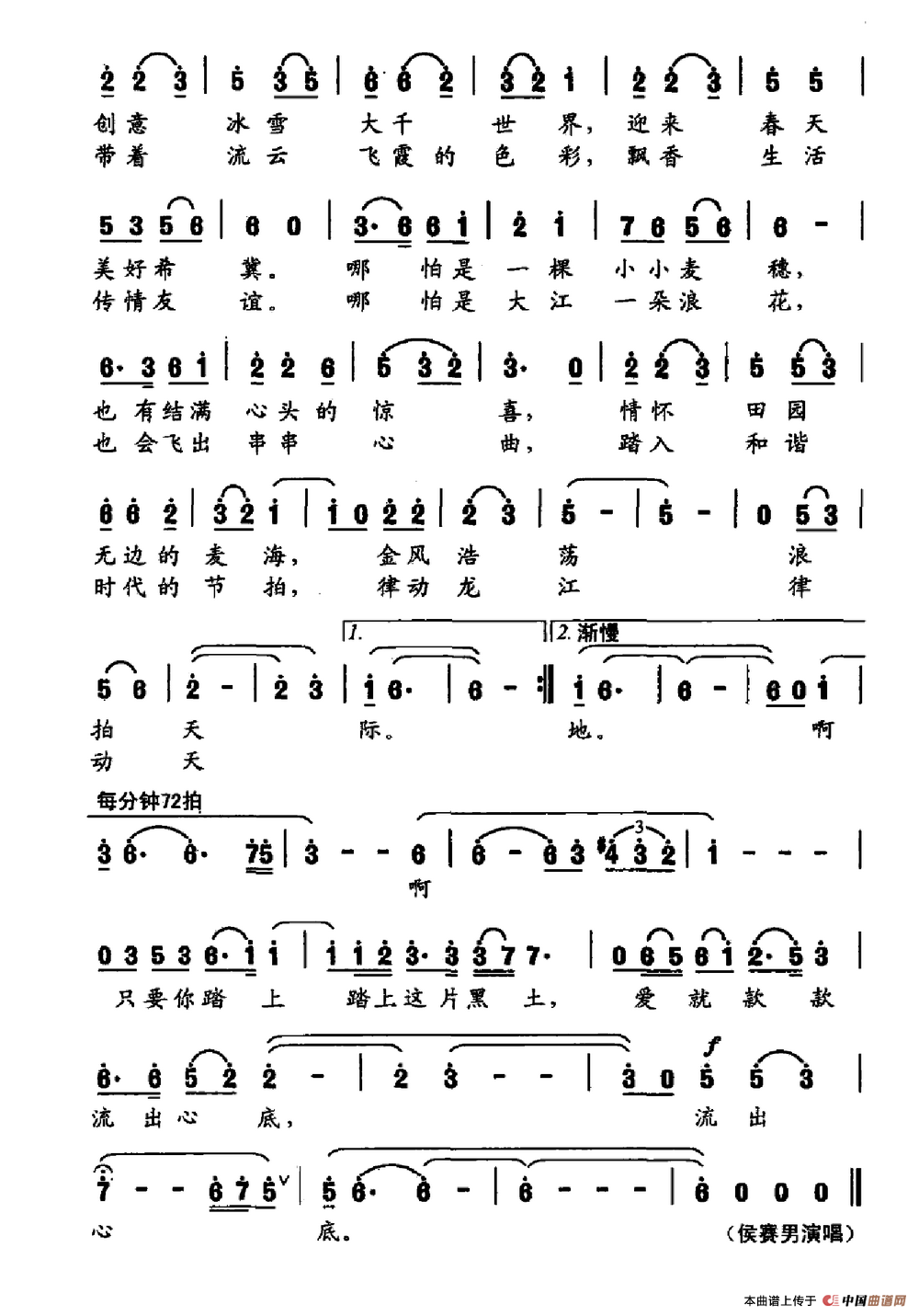 关于《美丽神奇的黑土地》曲谱的评论