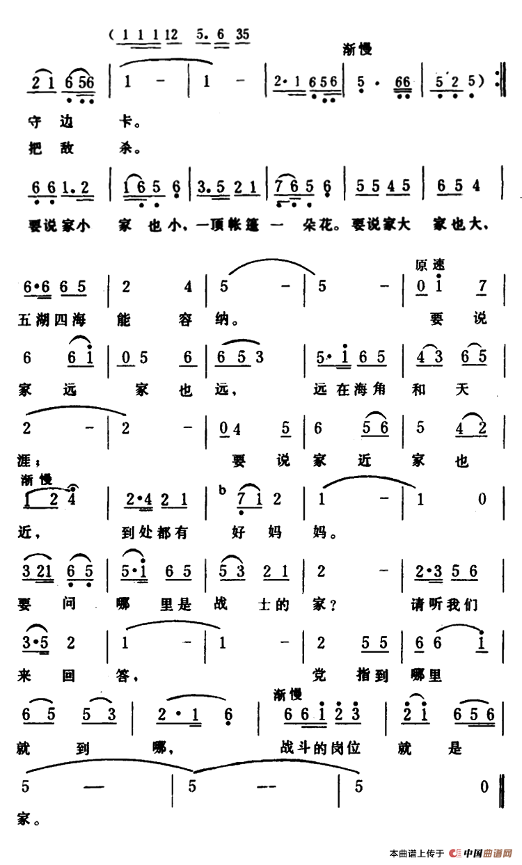 关于《战斗的岗位就是家》曲谱的评论