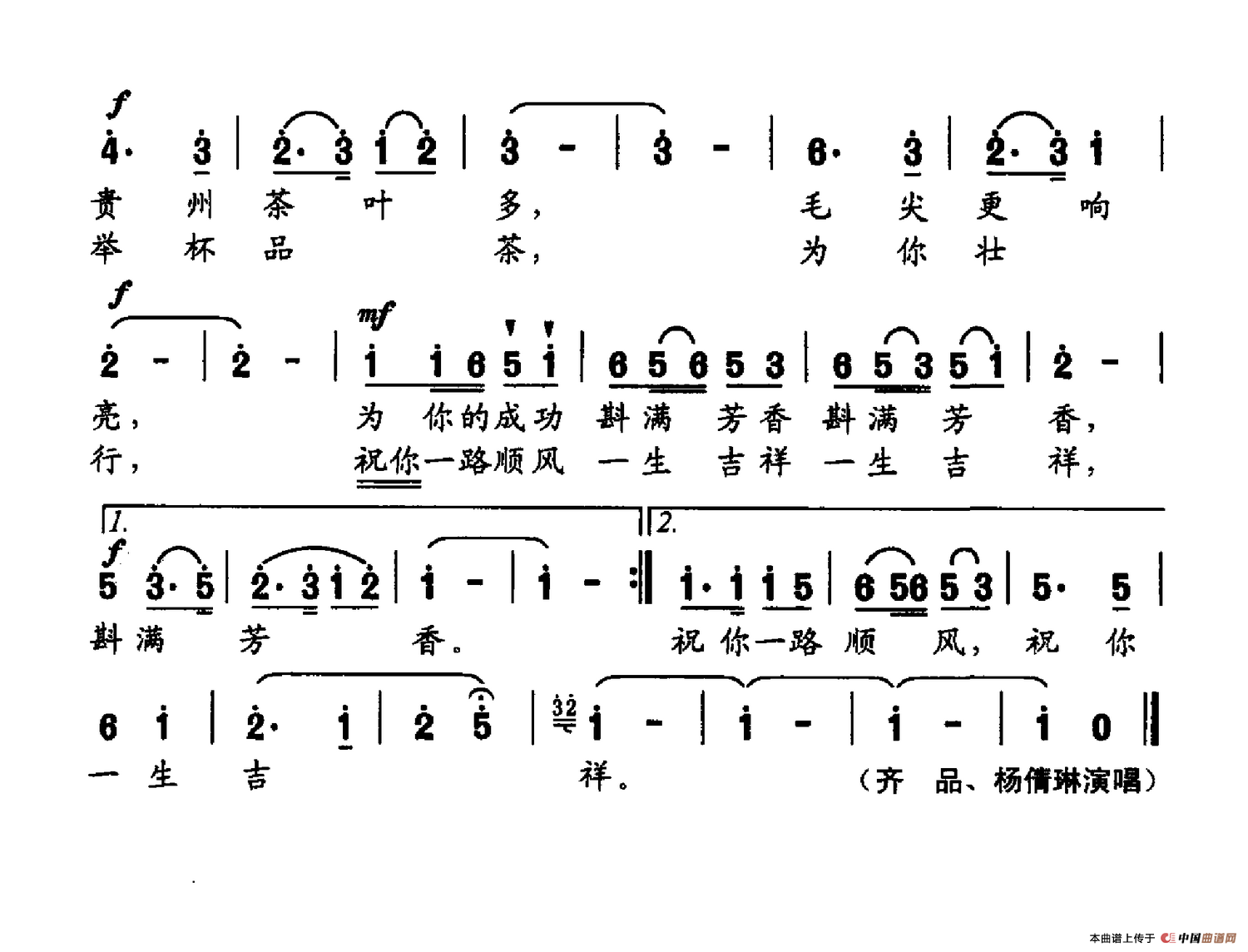 关于《品一杯毛尖满城香》曲谱的评论