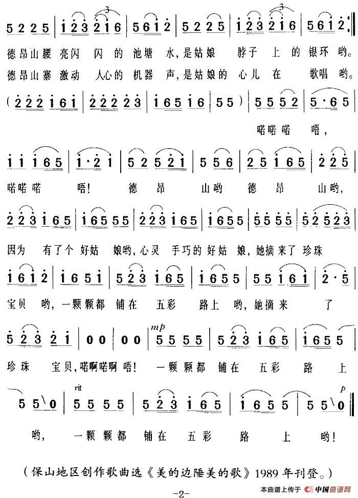 关于《德昂山有个好姑娘》曲谱的评论
