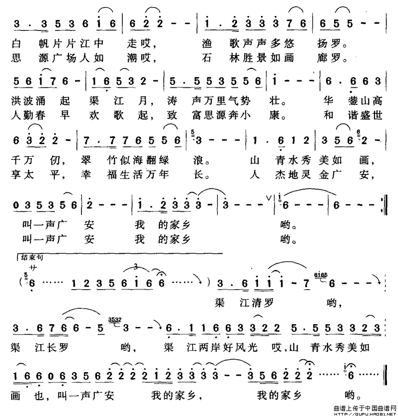 关于《叫一声广安我家乡》曲谱的评论