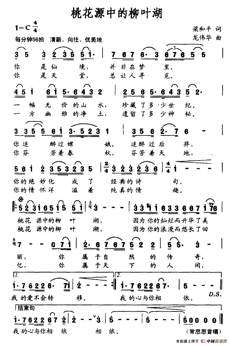 关于《桃花源中的柳叶湖》曲谱的评论
