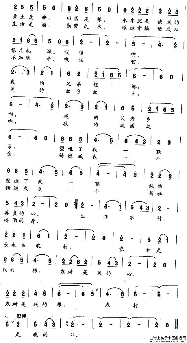 关于《啊,农村,我的根》曲谱的评论