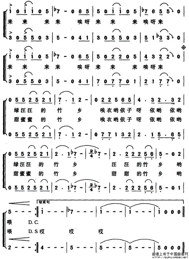 提示:在曲谱图片上单击右键,选择“图片另存为...”即可将曲谱保存到您的电脑中,打印时候可将图片插入到WORD中,调整合适大小打印即可。