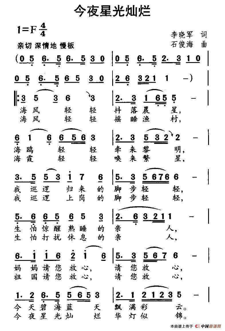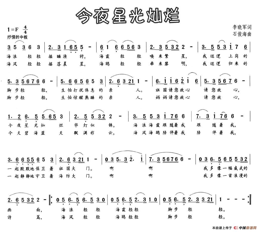 关于《今夜星光灿烂》曲谱的评论