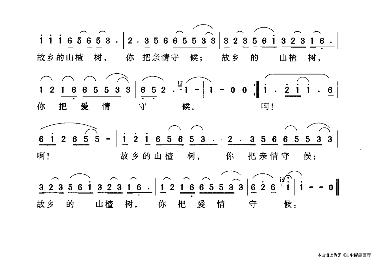 当前位置: 首页 民歌曲谱 六字歌名 故乡的山楂树(郝艺英词 李汉民曲)