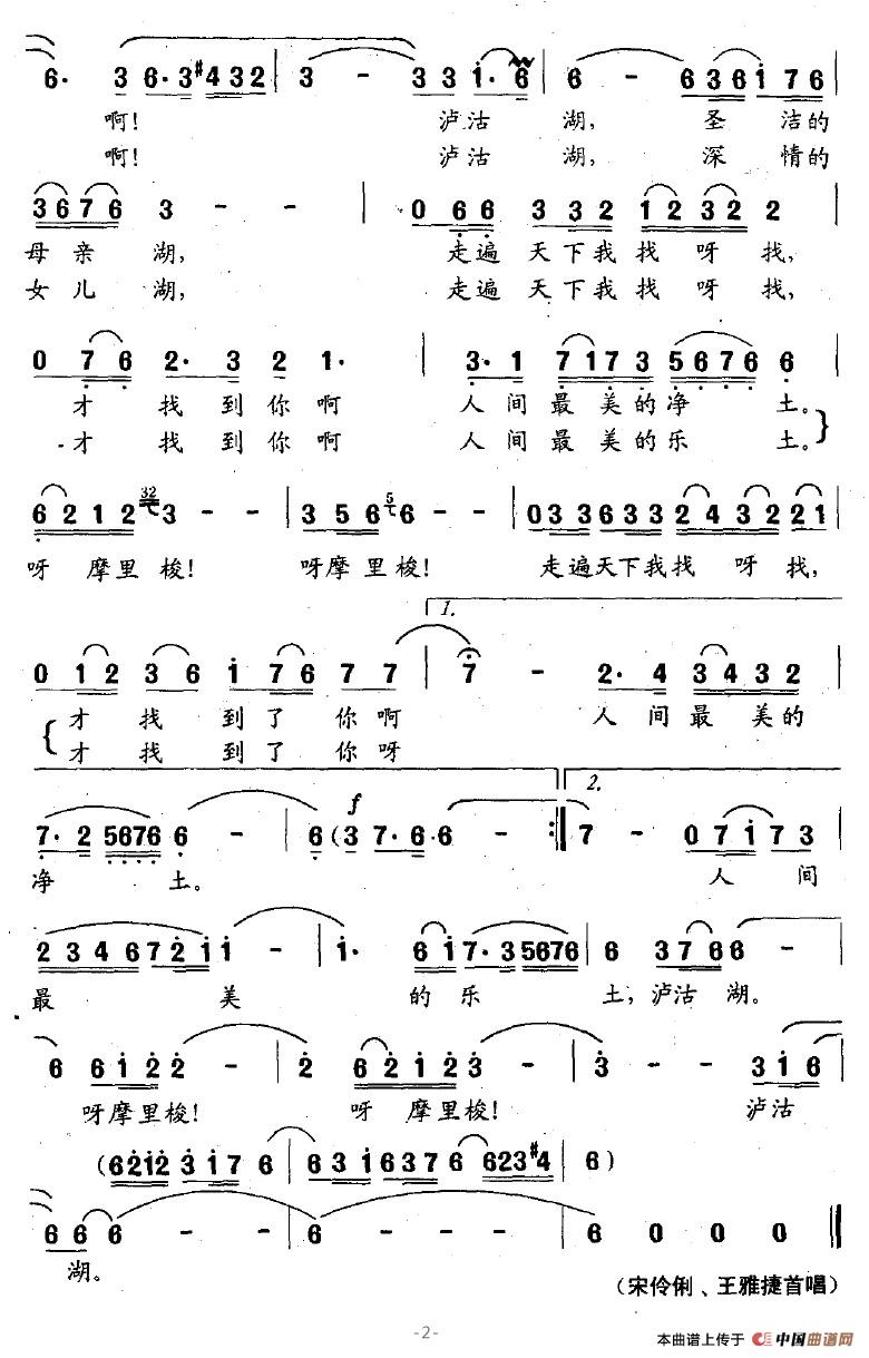 关于《沪沽湖,女儿湖》曲谱的评论