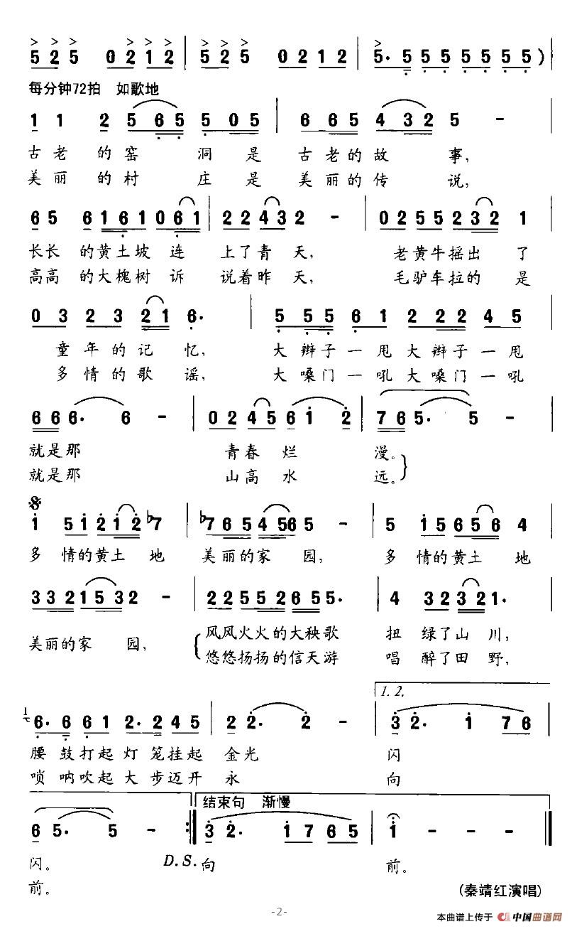 关于《多情的黄土地》曲谱的评论