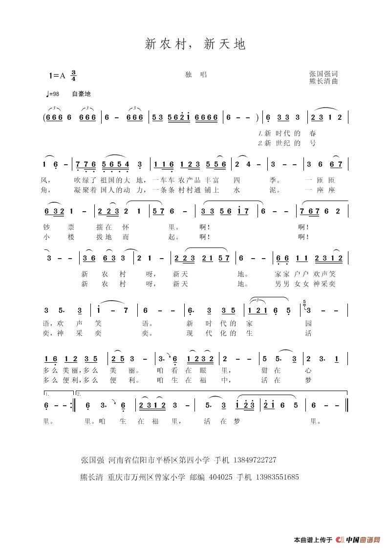 关于《新农村,新天地》曲谱的评论