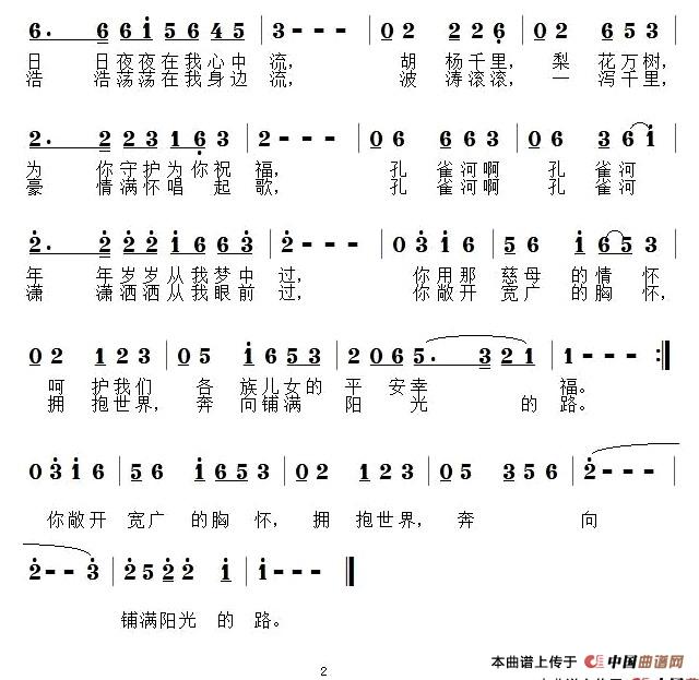 关于《心中的孔雀河》曲谱的评论