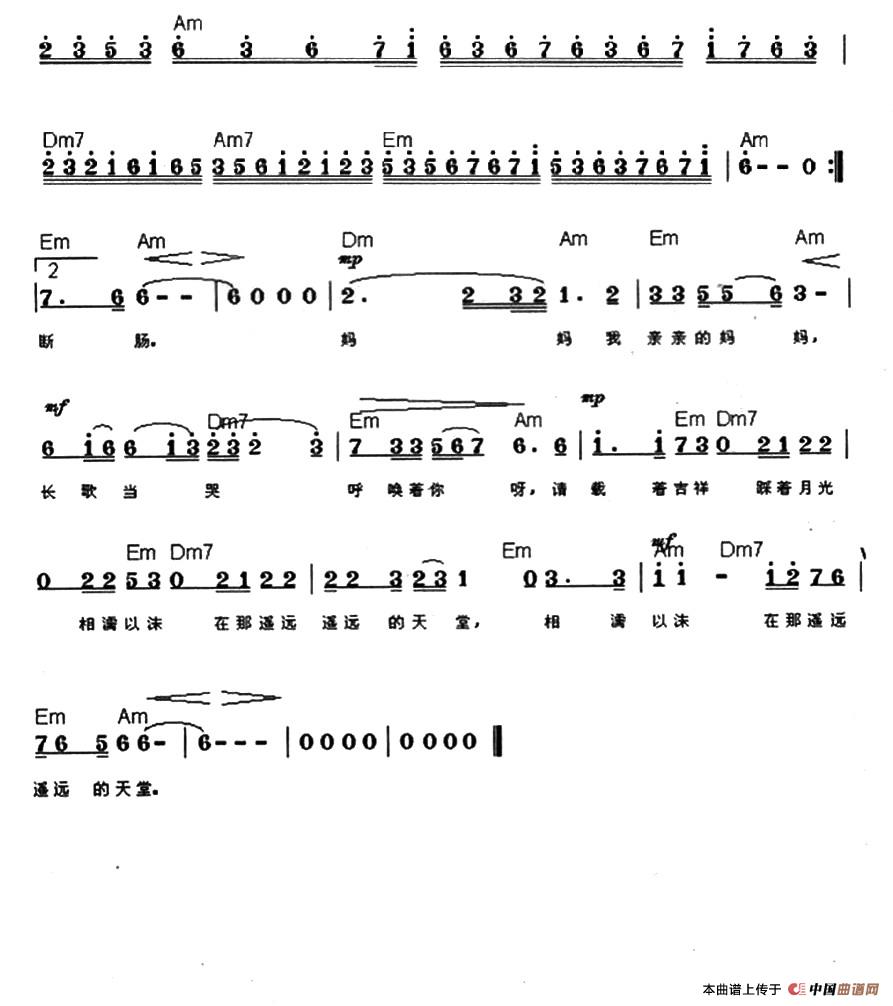 作词:姚玉凤 作曲:王洪兴 编曲:王洪兴 演唱:郭洪领 圆圆的月儿挂在天上 泪光闪闪 照耀着心伤 望着皎洁清冷的月光哟 晚风传送的怀念绵长绵长 圆圆的月饼供在桌上 饼儿甜甜 盼着你分享 望着黯然神伤的亲人哟 泪花传染着思恋悠长悠长 捧着烫手的遗物悲泪流淌 撕心裂肺的痛苦谁人分担 这就是疼我爱我的妈妈呀 如此残酷的事实让我怎么去坚强 凝视揪心的遗照痛不名状 美好回忆的幸福摧儿心肝 这就是亲我宠我的妈妈呀 如此狠心的诀别让我怎能不断肠 妈妈 我亲亲的妈妈 长歌当哭呼唤着你呀 请载着吉祥 踩着月光 相濡以沫在那遥远遥远的天堂 |