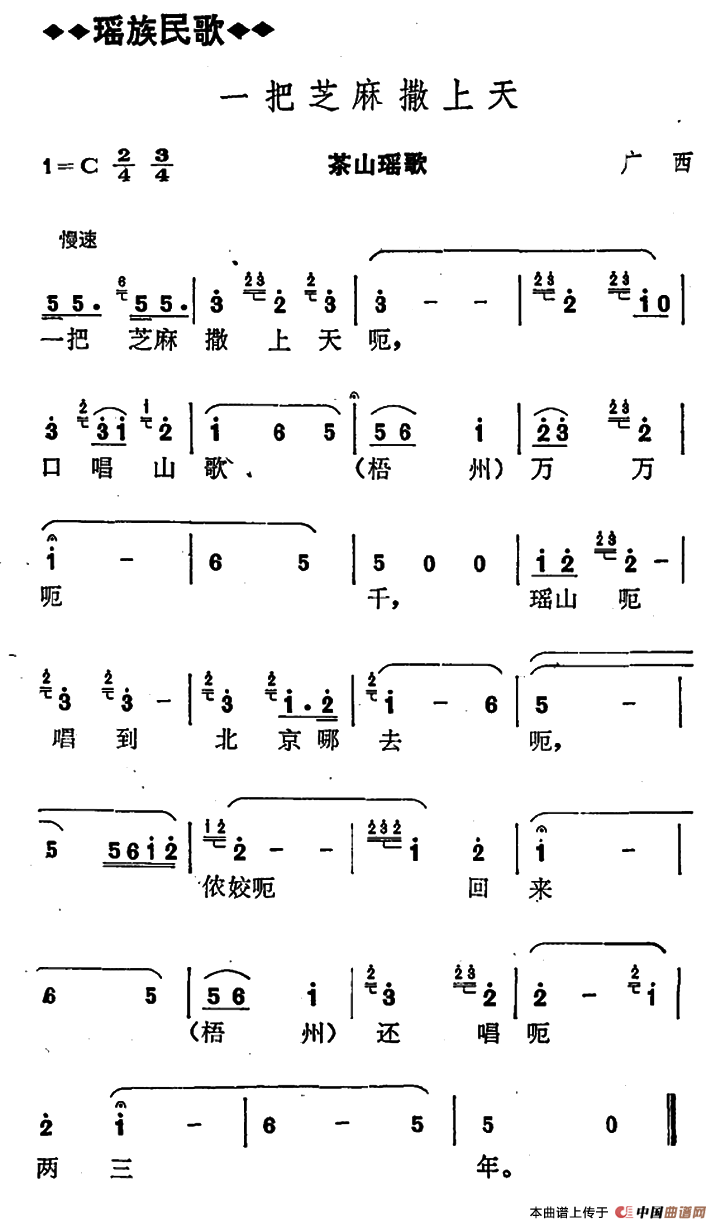 一把芝麻撒上天(广西瑶族民歌)