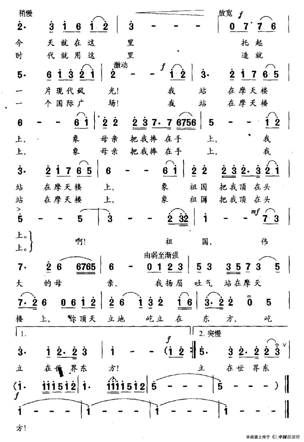 关于《我站在摩天楼上》曲谱的评论