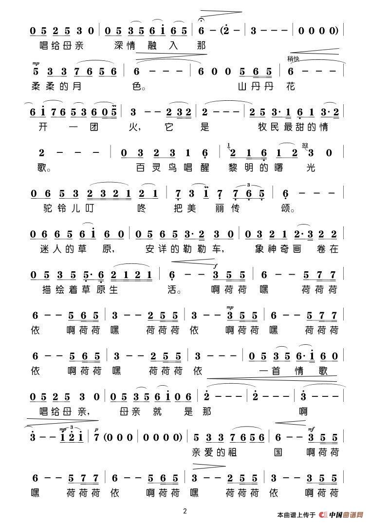 关于《唱首情歌给母亲》曲谱的评论