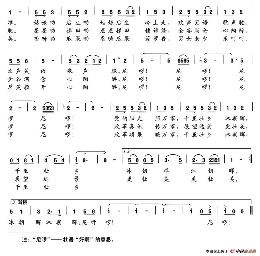 关于《千里壮乡沐朝晖》曲谱的评论