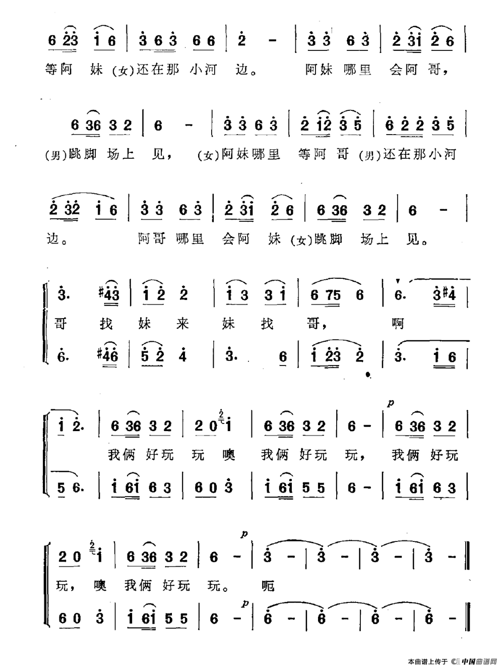 关于《隔山隔箐来相会》曲谱的评论