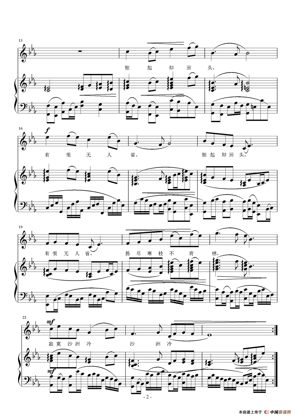 关于《谁见幽人独往来》曲谱的评论