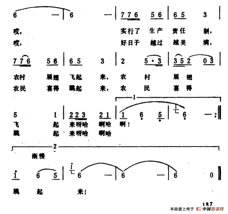 关于《农村展翅飞起来》曲谱的评论