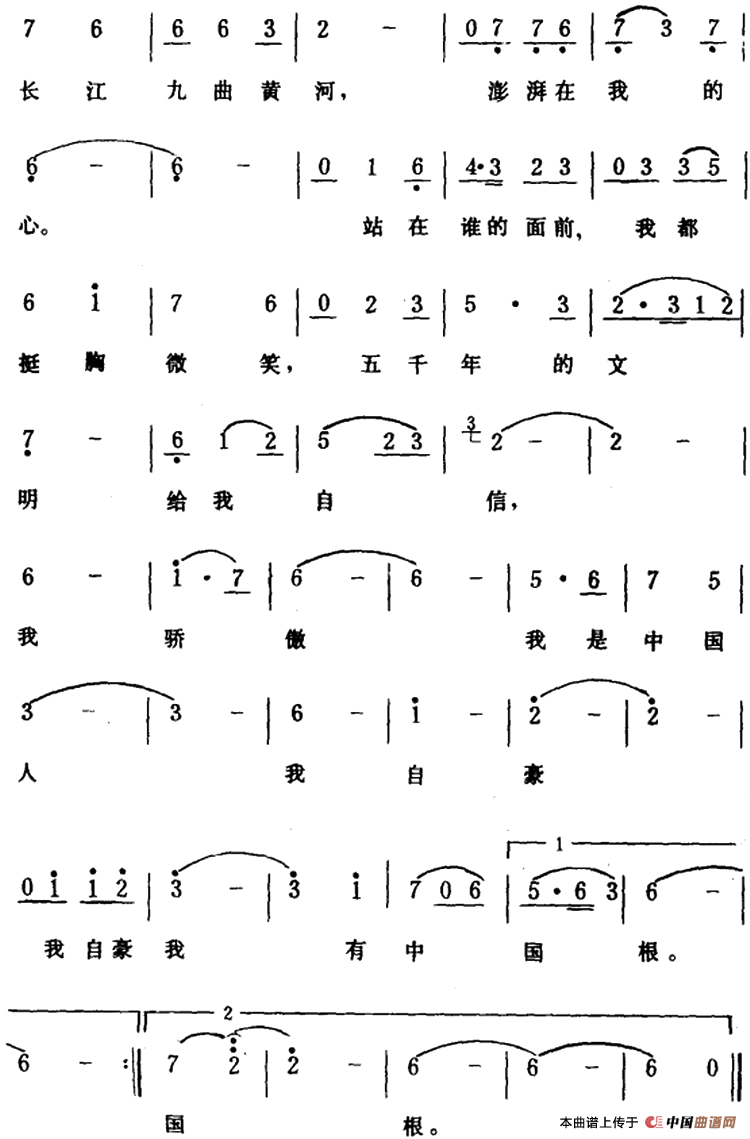 关于《中国中国我的根 》曲谱的评论