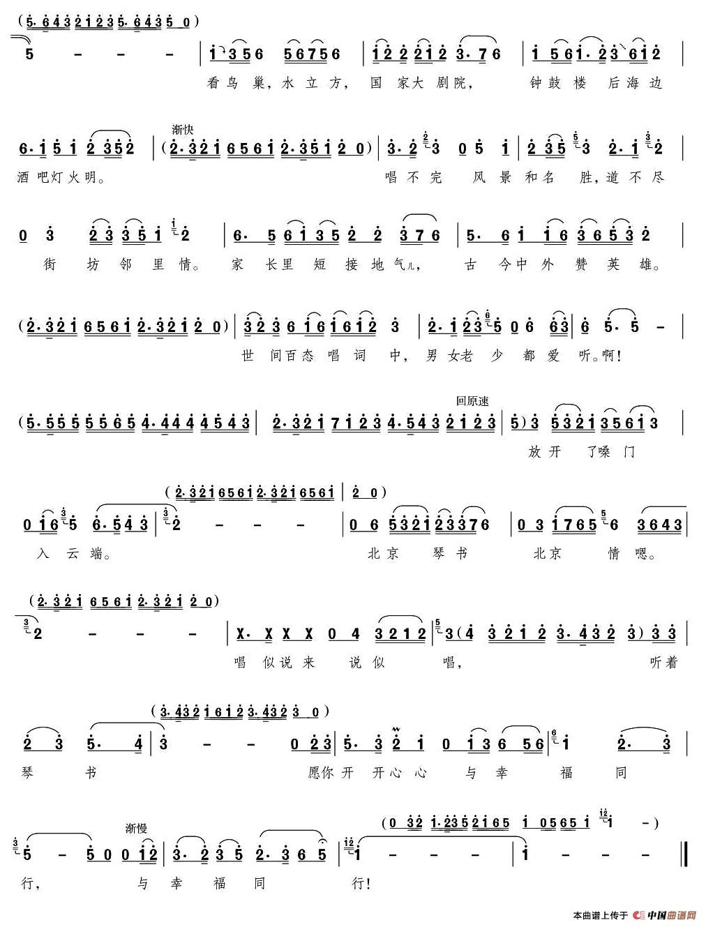 关于《北京琴书北京情》曲谱的评论