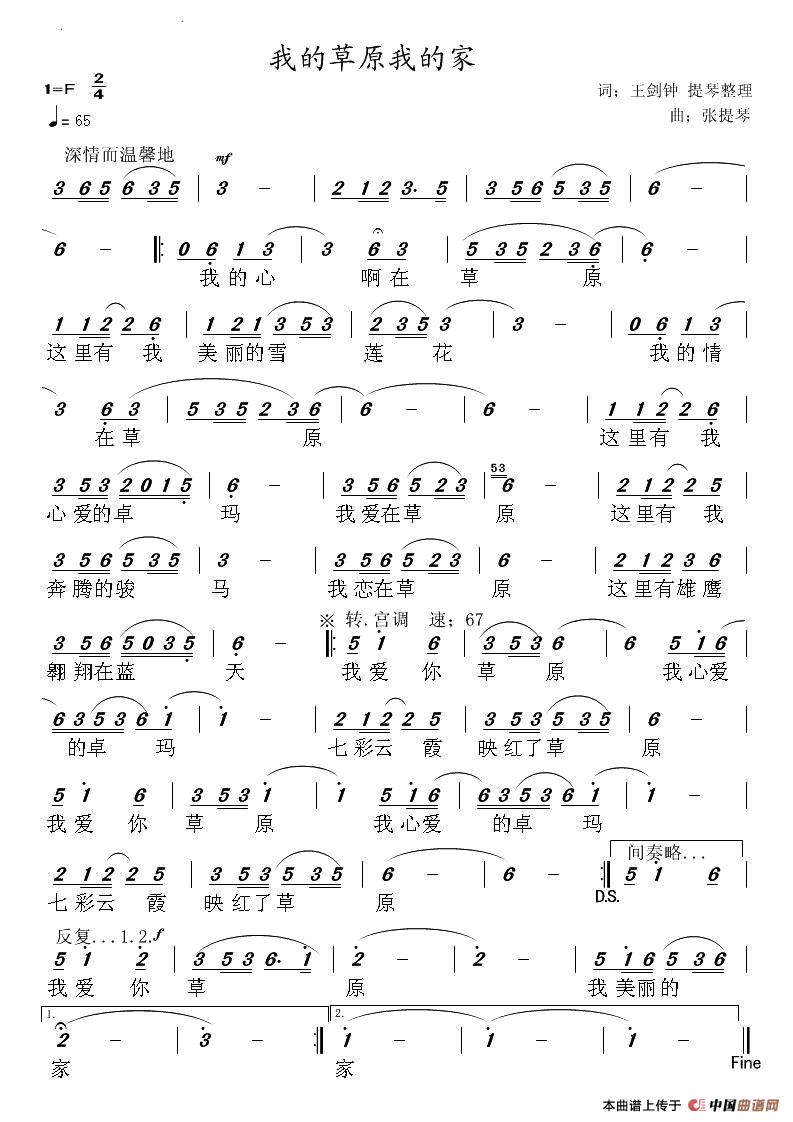 关于《我的草原我的家》曲谱的评论