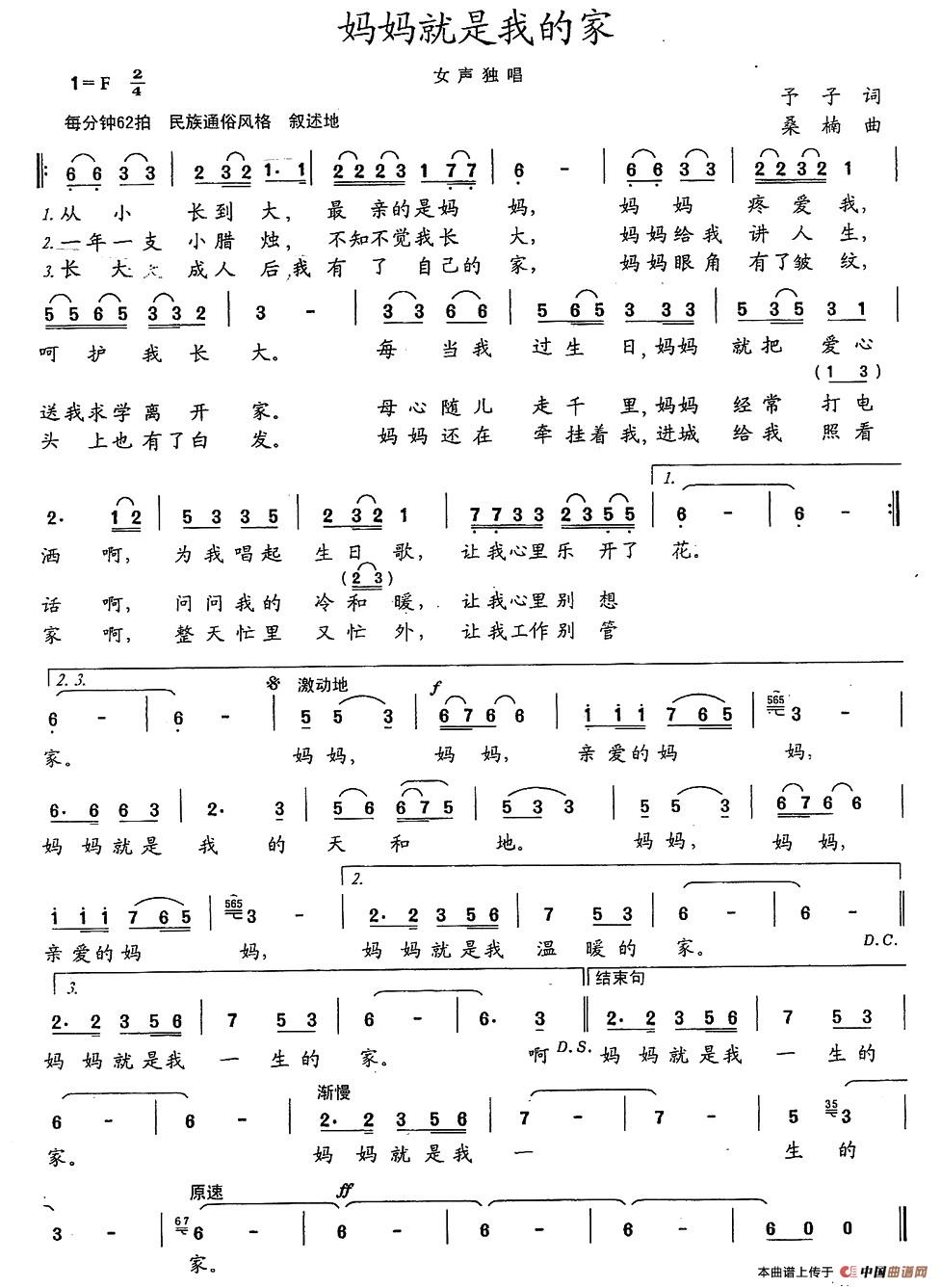 妈妈,妈妈,亲爱的妈妈,妈妈就是我一生的家。