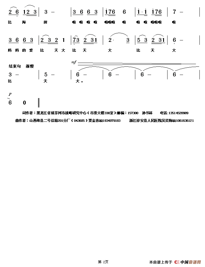 关于《最爱的人是妈妈 》曲谱的评论