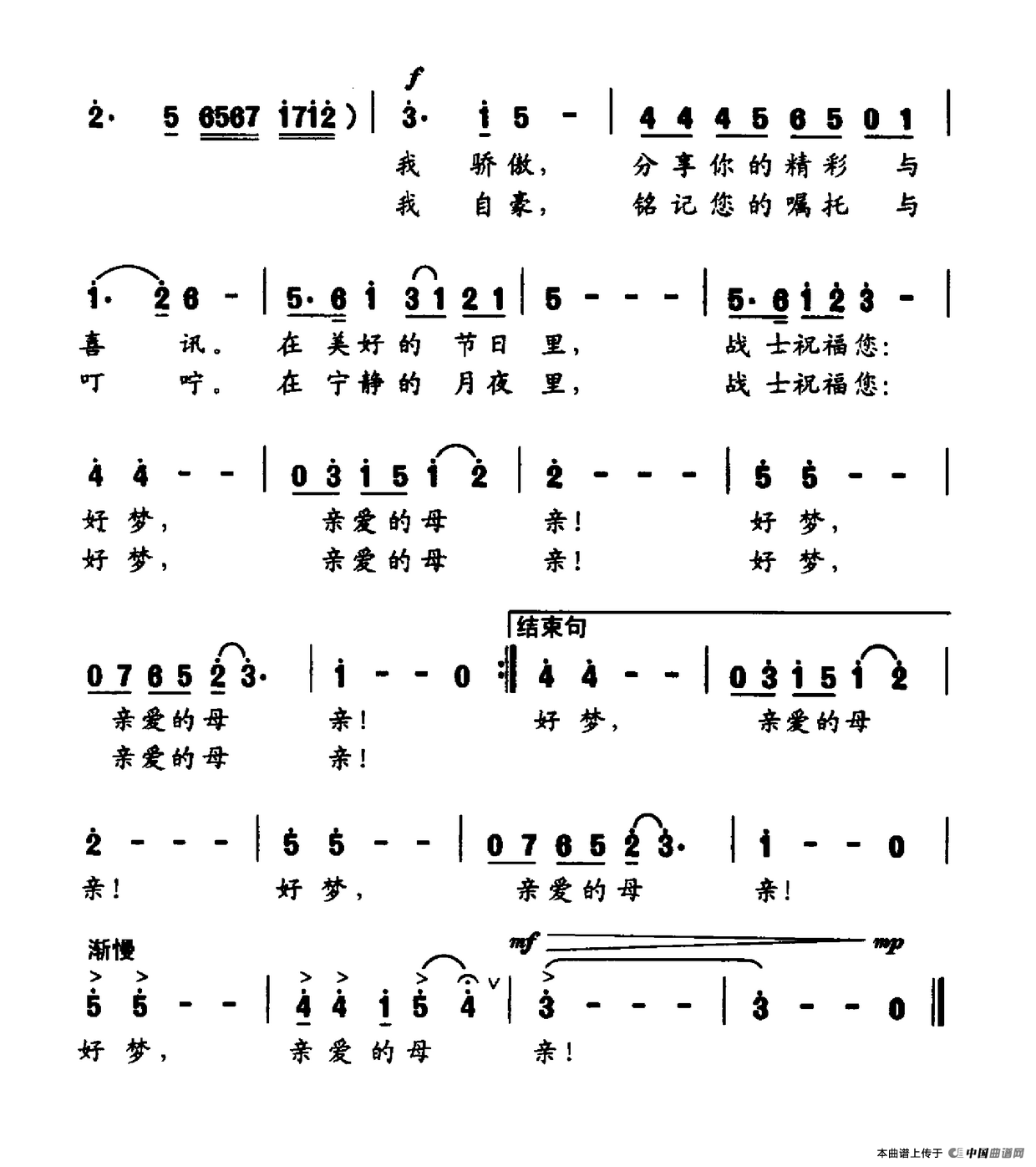 关于《好梦,亲爱的母亲》曲谱的评论