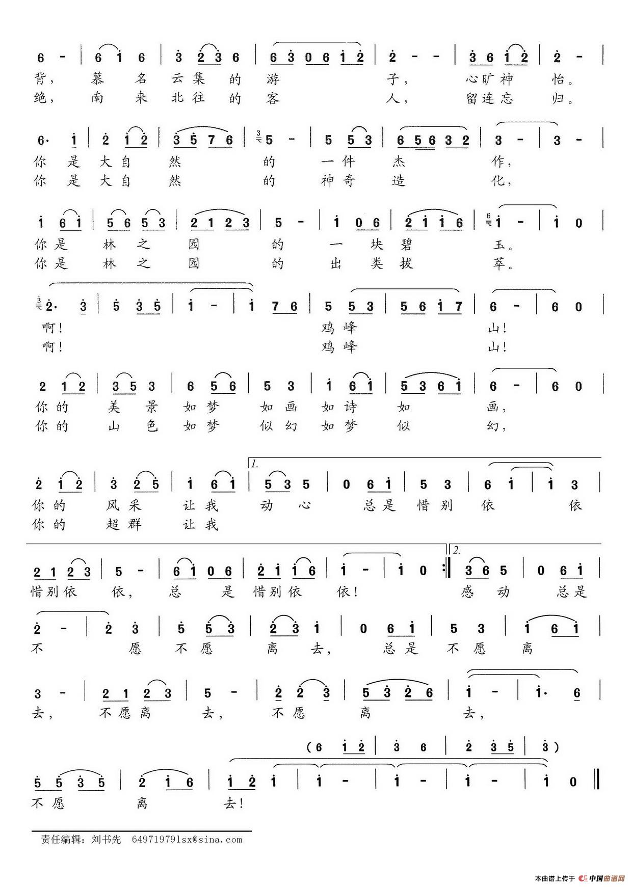 关于《陇上奇葩鸡峰山》曲谱的评论
