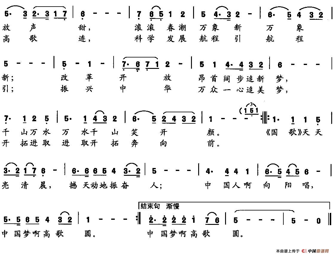 关于《高歌同圆中国梦》曲谱的评论