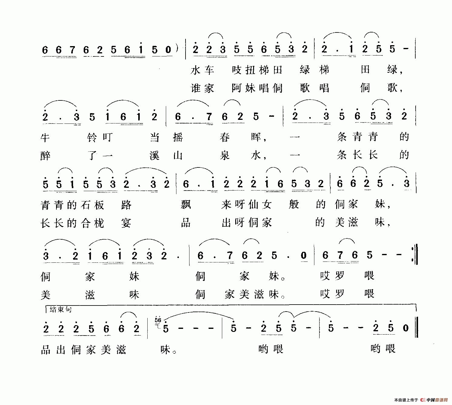 关于《山青水秀侗乡美》曲谱的评论