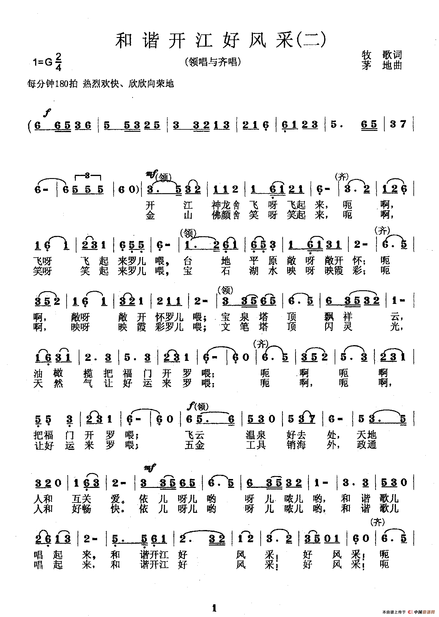 《和谐开江好风采》文本歌词