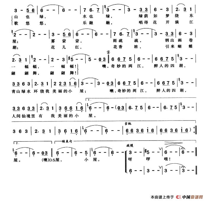 关于《家在两江四湖住》曲谱的评论