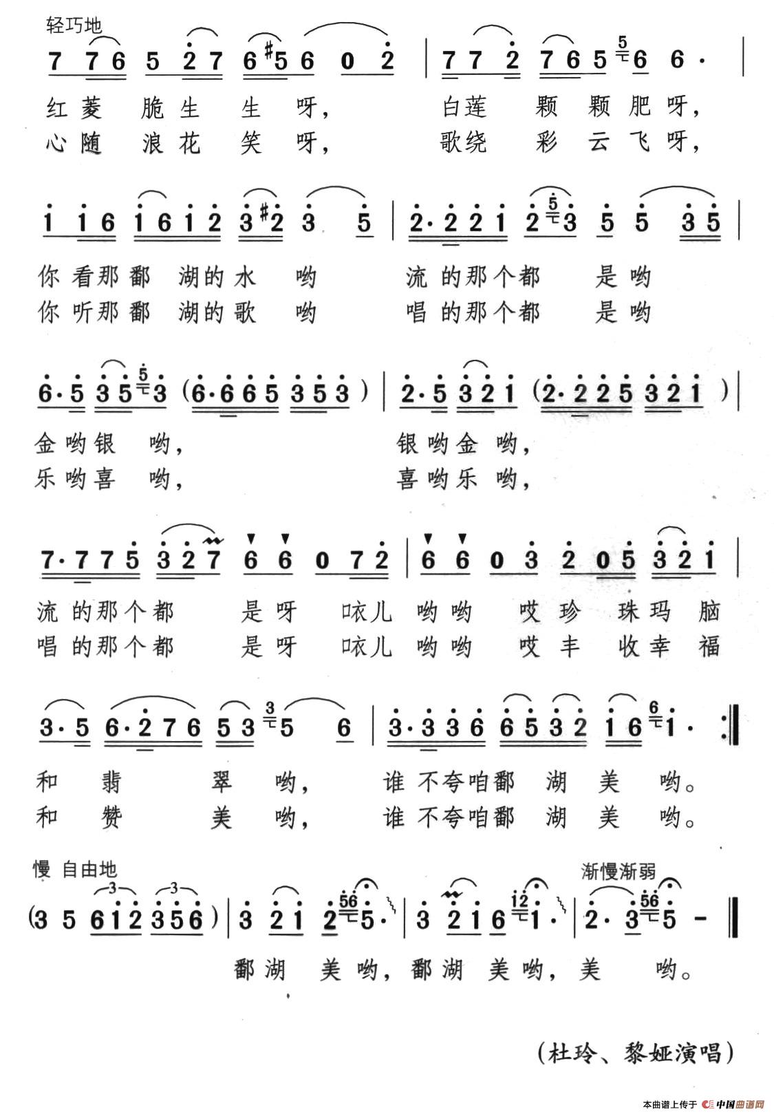 关于《谁不夸咱鄱湖美》曲谱的评论