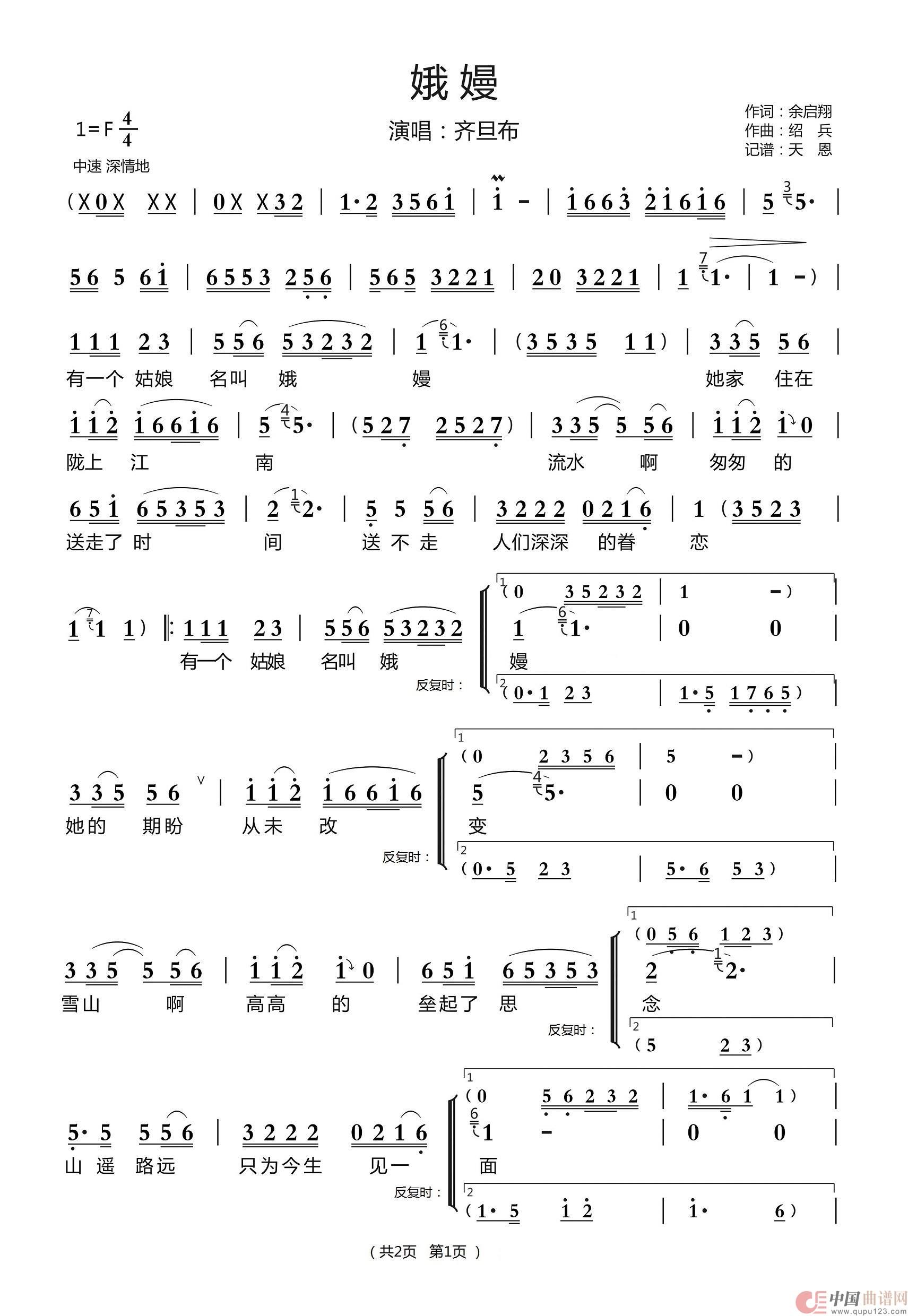 关于《娥嫚(完整版)》曲谱的评论