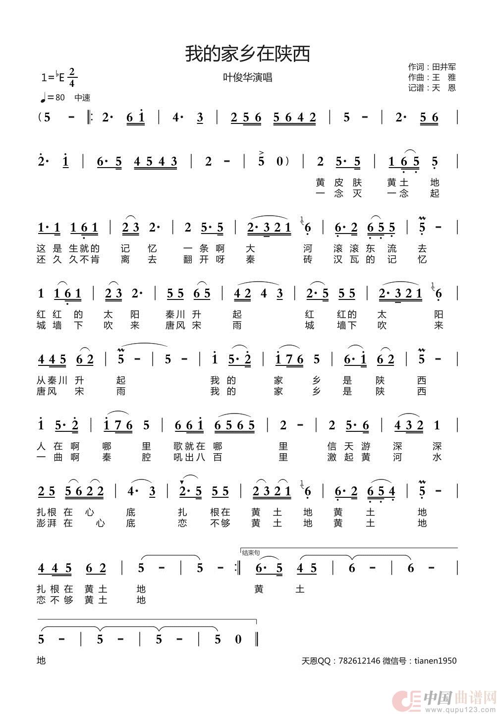 关于《我的家乡在陕西》曲谱的评论