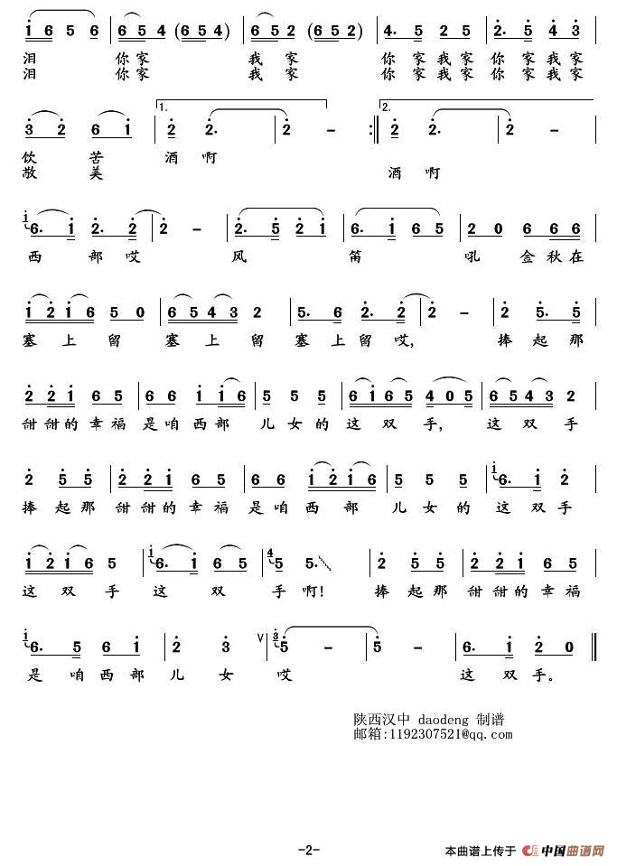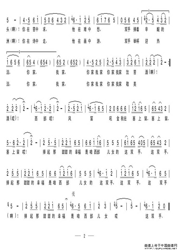 关于《西部儿女一双手》曲谱的评论