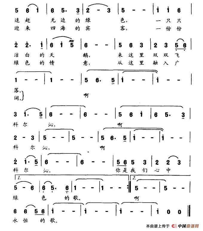 关于《科尔沁,绿色的歌》曲谱的评论