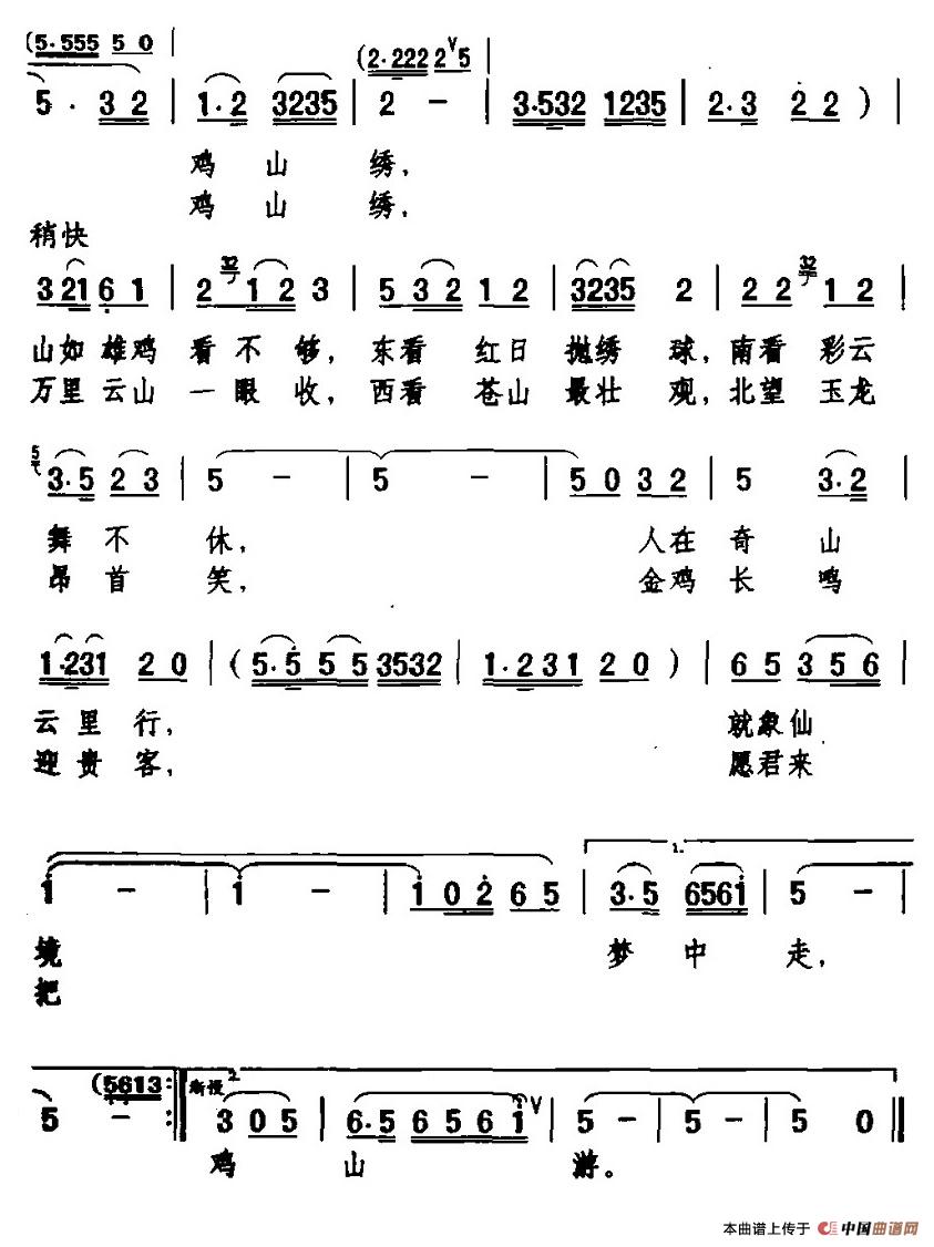 关于《鸡足名山多锦绣》曲谱的评论