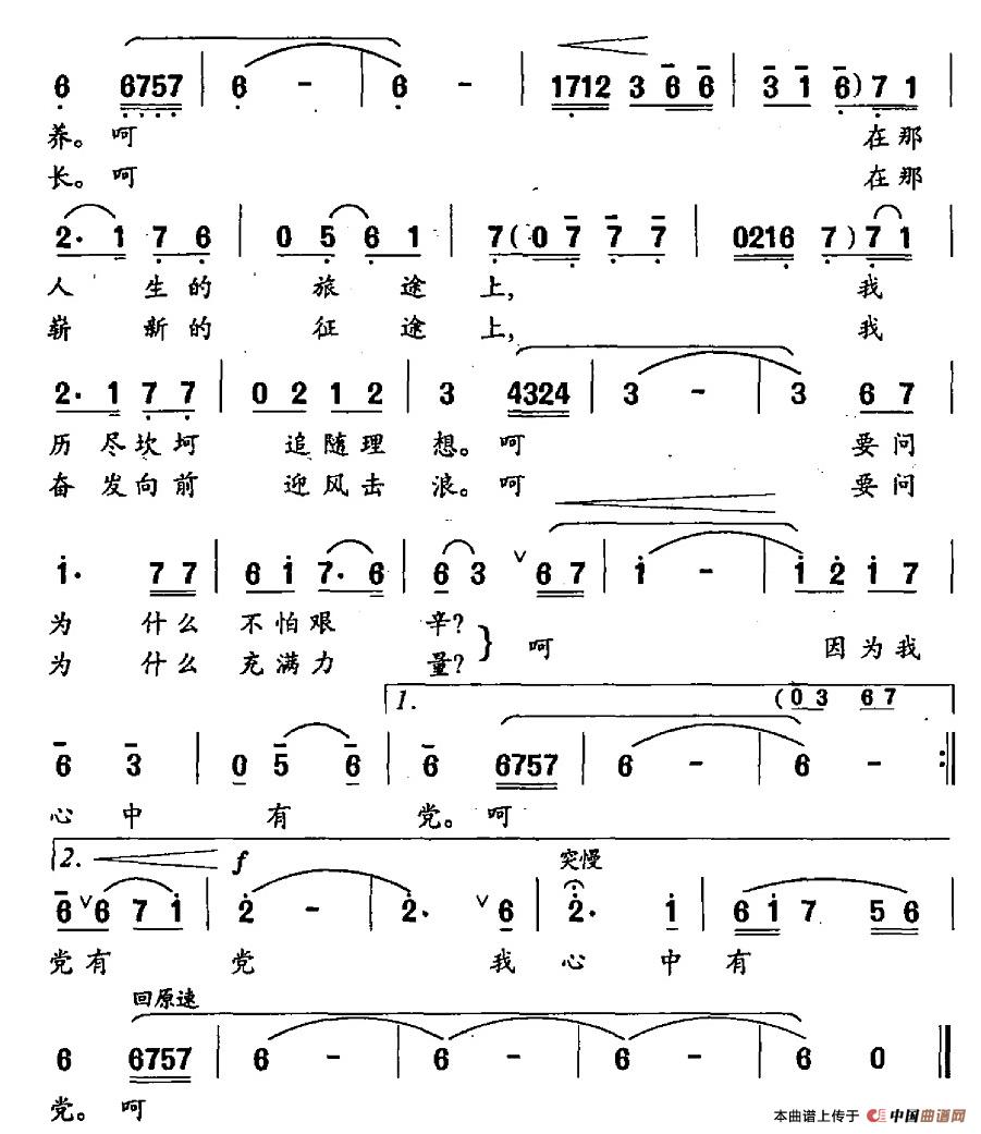 关于《因为我心中有党》曲谱的评论