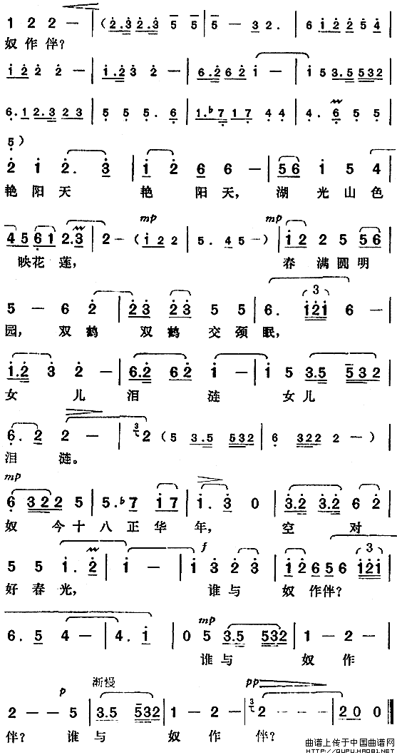 提示:在曲谱图片上单击右键,选择“图片另存为...”即可将曲谱保存到您的电脑中,打印时候可将图片插入到WORD中,调整合适大小打印即可。