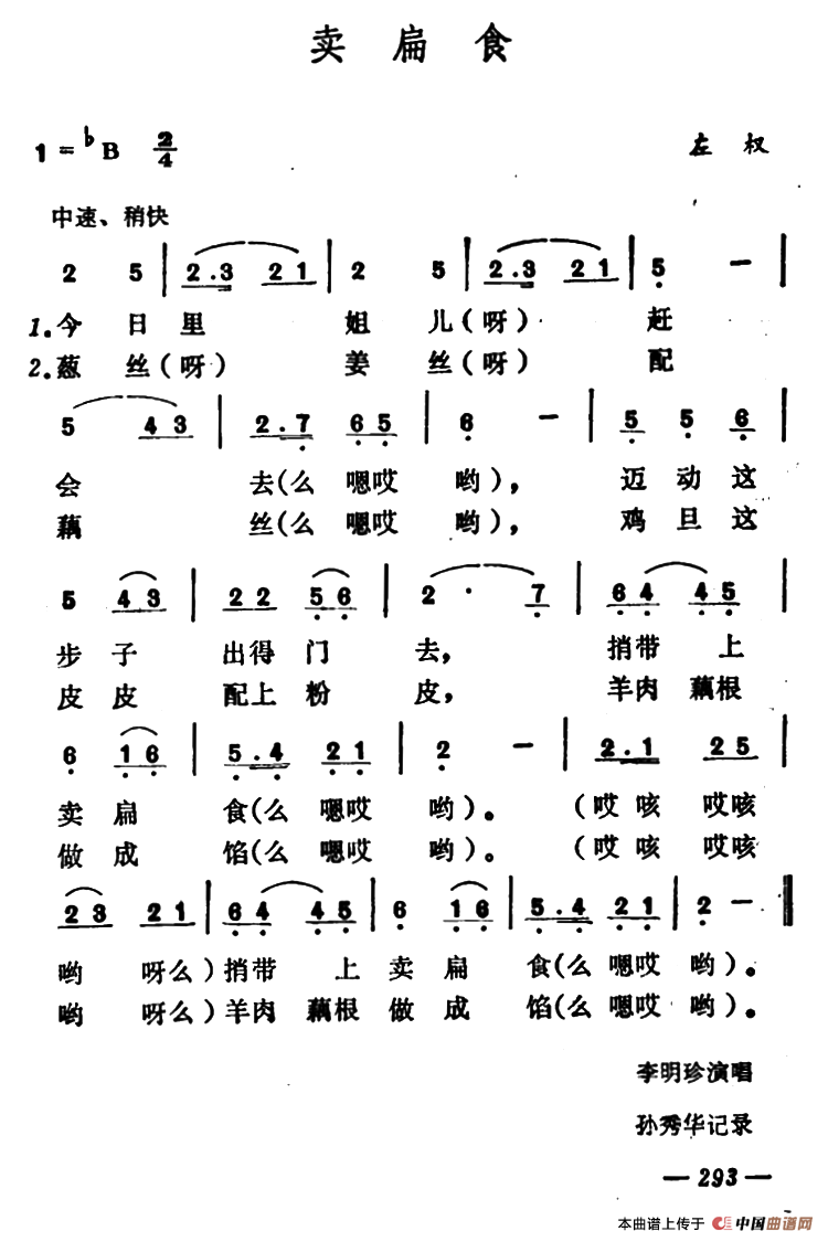 关于《卖扁食》曲谱的评论