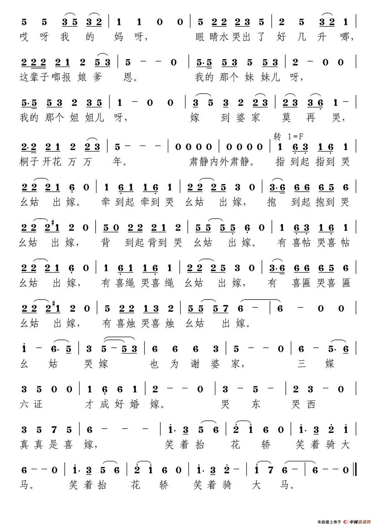 关于《幺姑嫁》曲谱的评论